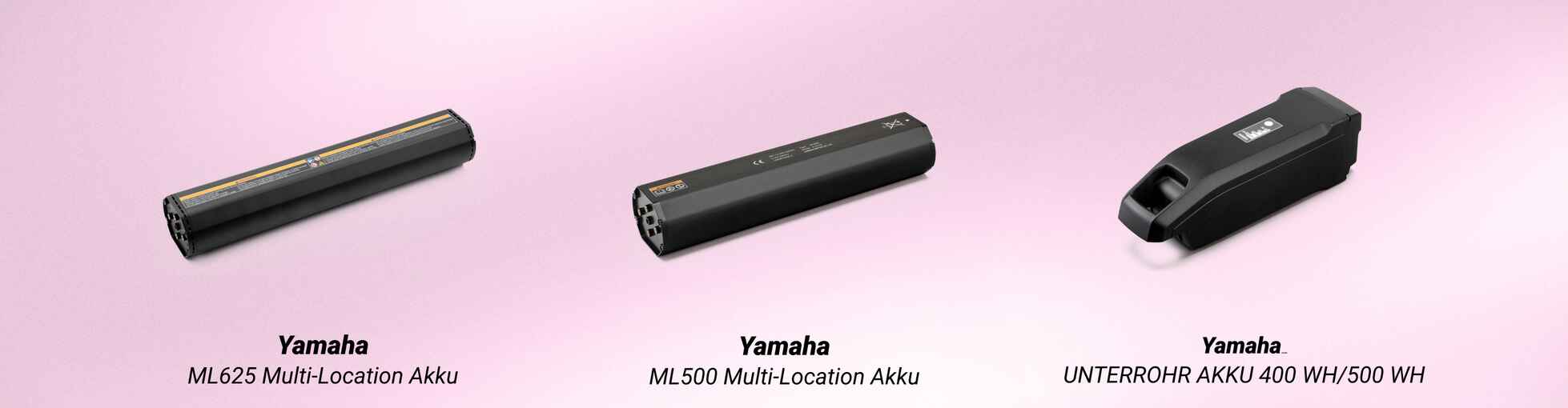 ML625 | 36 V | 16,7 Ah | 625 Wh | 3,8 kg | 4 Stunden | - | Alle Yamaha-Antriebseinheiten ab 2019 |